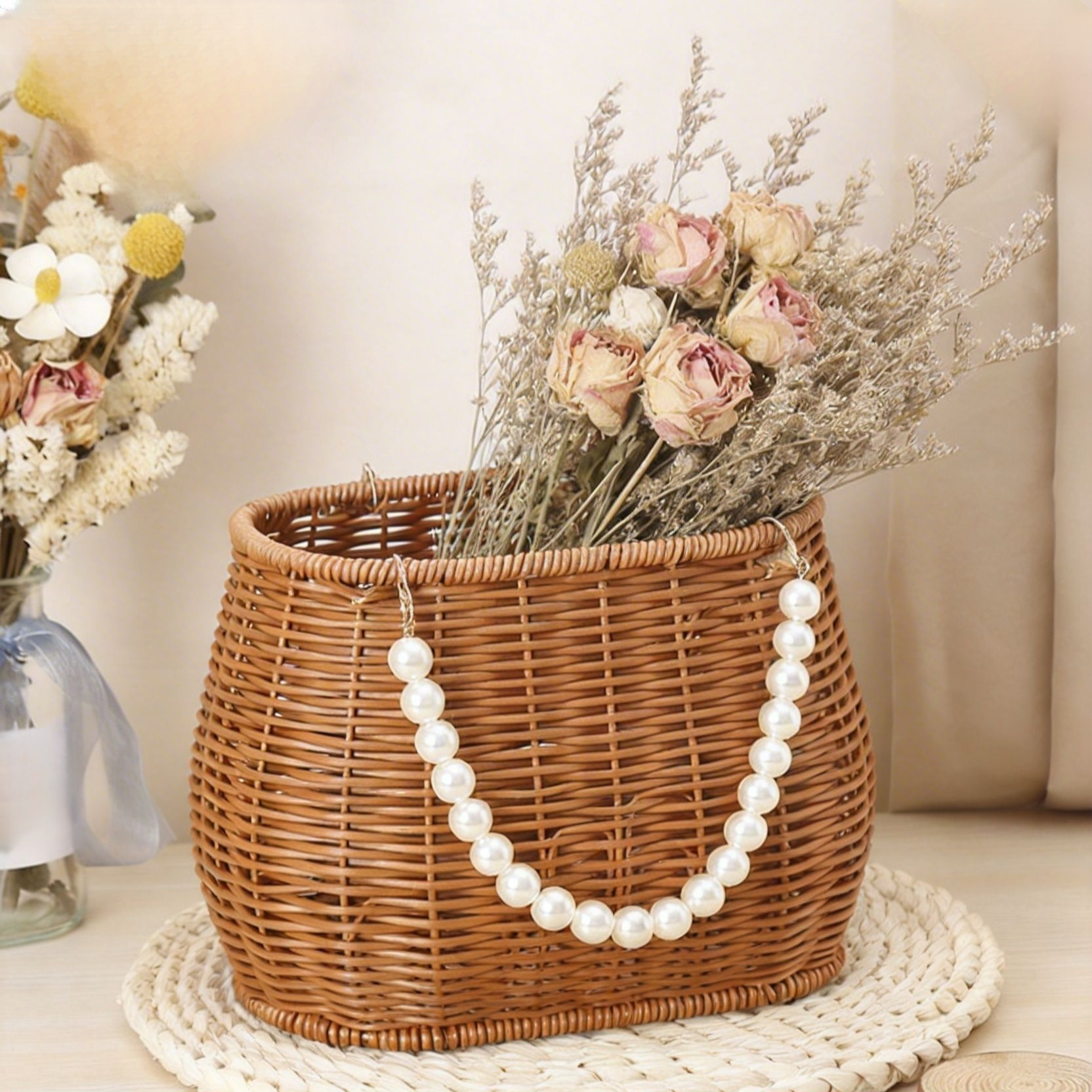 編み込み野菜かご、模造籐製ピクニックかご